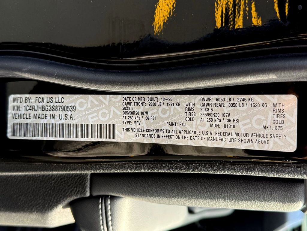 ENGINE: 3.6L V6 24V VVT UPG I W/ESS (STD), DIAMOND BLACK CRYSTAL PEARLCOAT, BLACKOUT MODEL -inc: Two-Tone Paint Group, Delete Limited Badge, Tires: 265/50R20 A/S Performance, Wheels: 20 x 8.5 Black Painted Aluminum, Gloss Black Exterior Accents, Black Painted Roof, Dual-Pane Panoramic Sunroof, Wireless Phone Connectivity, Wheels: 18 x 8 Polished/Painted Aluminum, Voice Activated Dual Zone Front Automatic Air Conditioning, Vinyl Door Trim Insert, Valet Function, Trip Computer, Transmission: 8-Speed Automatic (850RE).