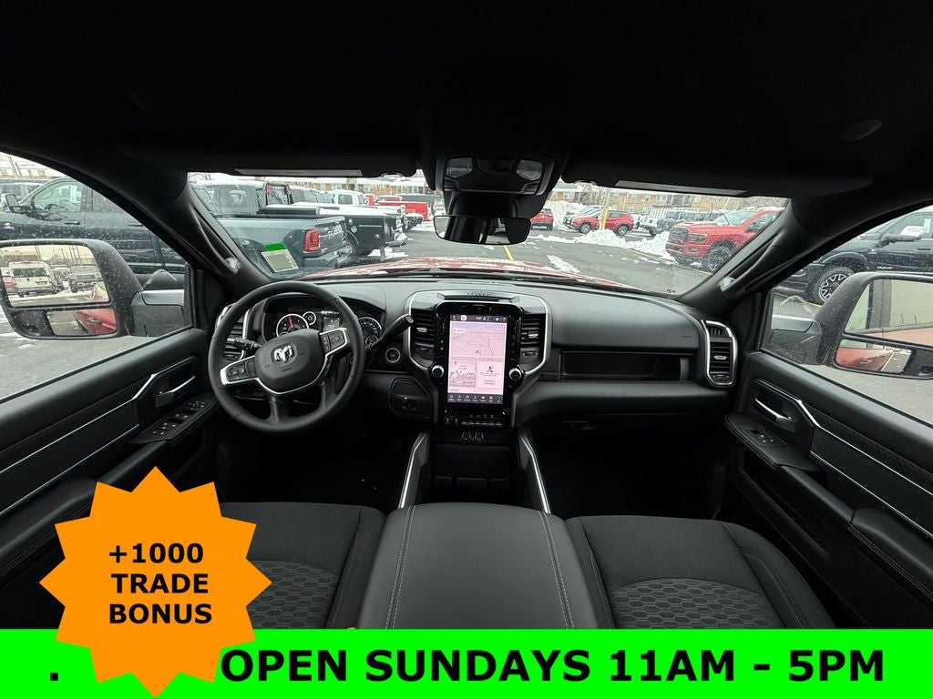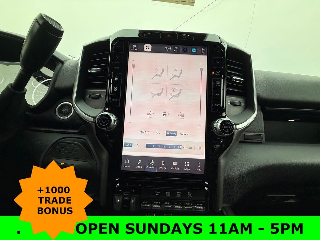MOLTEN RED PEARLCOAT, MANUFACTURER'S STATEMENT OF ORIGIN, I/P MOUNTED AUXILIARY SWITCHES -inc: Dash Pass Thru Wire Circuits, HEATED SEATS & WHEEL GROUP -inc: Heated Steering Wheel, Heated Front Seats, ENGINE: 6.7L I6 CUMMINS HO TURBO DIESEL -inc: Selective Catalytic Reduction (Urea), Dual 730 Amp Maintenance Free Batteries, Cummins Turbo Diesel Badge, Heavy Duty Engine Cooling, Current Generation Engine Controller, Diesel Exhaust Brake, Supplemental Heater, 3.42 Axle Ratio, Front Bumper Sight Shields, Capless Fuel Fill w/o Discriminator, CLEARANCE LAMPS, BIG HORN LEVEL 1 PLUS EQUIPMENT GROUP -inc: For Details Visit DriveUconnect.com, For More Info, Call 800-643-2112, Emergency Vehicle Alert System (EVAS), 12 Touchscreen Display, Glove Box Lamp, Auto Power-Folding Mirrors, Footwell Courtesy Lamp, MOPAR Deployable Bed Step, Alexa Built-In, Forward & Reverse Utility Lights, Locking Lower Glove Box, Remote Start System, 9 Alpine Speakers w/Subwoofer, Disassociated Touchscreen Display, Dual Glove Boxes, 2nd Row In Floor Storage Bins, Rear View Auto Dim Mirror, Rear Dome w/On/Off Switch Lamp, LED Bed Lighting, GPS Navigation, SiriusXM w/360L, Connected Travel & Traffic Services, Foam Bottle Insert (Door Trim Panel), Big Horn IP Badge, Off-Road Information Pages, Trailer Tow Pages, HD Radio, Radio: Uconnect 5 Nav w/12.0 Display, Power Heated Fold Telescopic Mirrors, Steering Wheel Mounted Audio Controls, Air Conditioning ATC w/Dual Zone Control, MOPAR Spray In Bedliner, Luxury Steering Wheel, Power Telescoping Mirrors, 5TH WHEEL/GOOSENECK TOWING PREP GROUP, 50 GALLON FUEL TANK, Wheels: 18 x 8.0 Polished Aluminum.