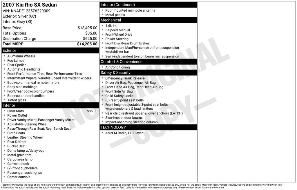 - Vehicle Name: Kia Rio