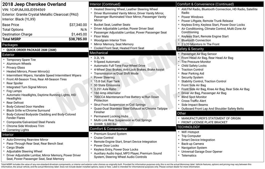 Discover the perfect balance of capability, technology, and refinement in this 2018 Jeep Cherokee Overland. With a list price of $18,978, this exceptional SUV represents an outstanding value that you won't want to miss. Visit our showroom today to experience the difference for yourself and let us help you find your dream vehicle.