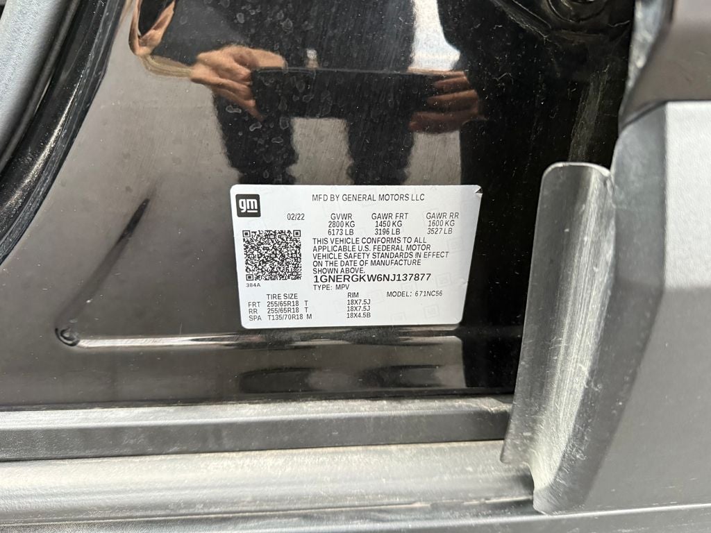 LICENSE PLATE FRONT MOUNTING PACKAGE (will be forced on orders with ship-to states that require a front license plate) , SEATS, FRONT BUCKET (STD), SEATING, 7-PASSENGER (2-2-3 SEATING CONFIGURATION) (STD), NOT EQUIPPED WITH REAR PARK ASSIST, SEE DEALER FOR DETAILS (Vehicles built prior to December 20, 2021 include Rear Park Assist. Certain vehicles built on or after December 20, 2021, will be forced to include (00Y) Not Equipped with Rear Park Assist, which removes Rear Park Assist. See the window label for the features on a specific vehicle.), MOSAIC BLACK METALLIC, LT CLOTH PREFERRED EQUIPMENT GROUP Includes Standard Equipment, JET BLACK, PREMIUM CLOTH SEAT TRIM, ENGINE, 3.6L V6, SIDI, VVT (310 hp [232.0 kW] @ 6800 rpm, 266 lb-ft of torque [361 N-m] @ 2800 rpm) (STD), AUDIO SYSTEM, CHEVROLET INFOTAINMENT 3 SYSTEM 7 diagonal color touchscreen, AM/FM stereo. Additional features for compatible phones include: Bluetooth® audio streaming for 2 active devices, voice command pass-through to phone, Apple CarPlay and Android Auto capable (STD), Wireless Phone Charging.