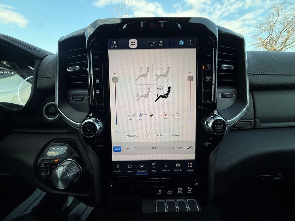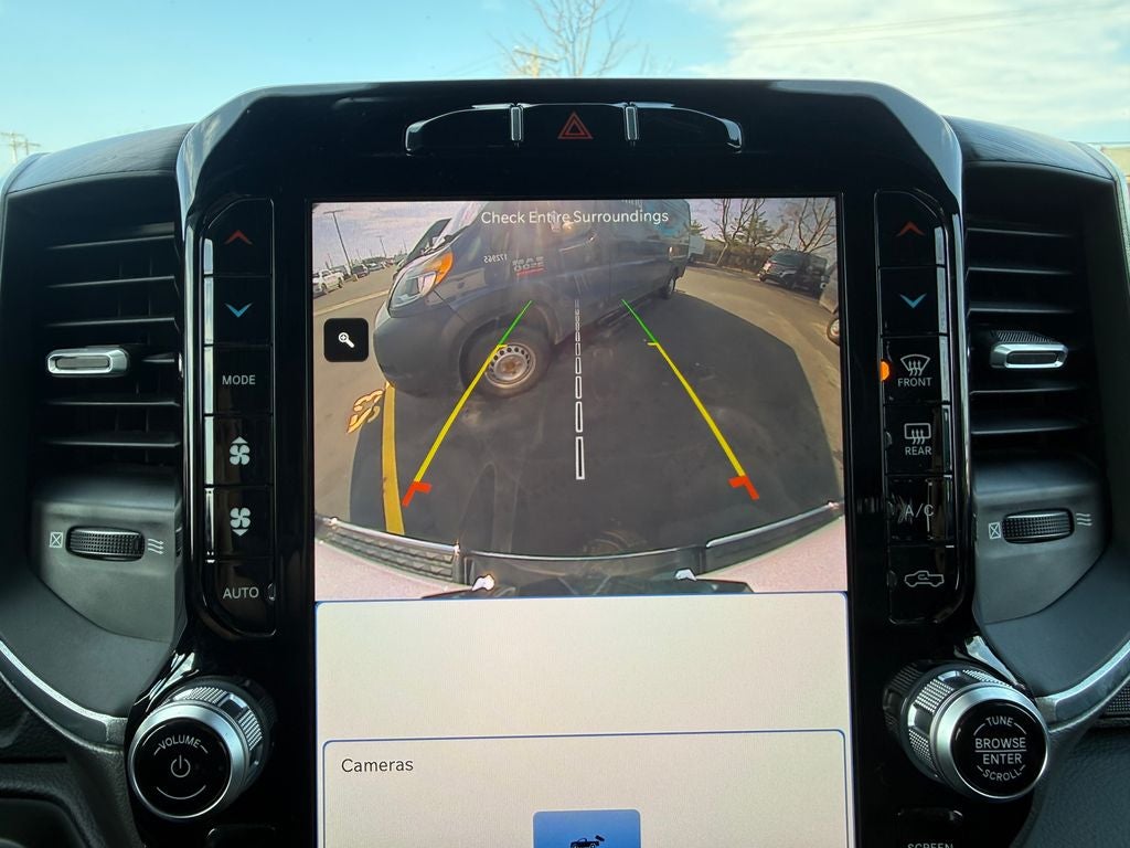 Step inside the spacious cabin and indulge in the luxurious leather-trimmed seats with heating and ventilation, ensuring your comfort no matter the weather. The 12-inch touchscreen display puts a wealth of connectivity and entertainment features at your fingertips, including Apple CarPlay, Android Auto, and a 4G LTE Wi-Fi hotspot. The Laramie's advanced safety technologies, such as ParkSense Front/Rear Park Assist and Blind Spot Monitoring, provide added peace of mind on the road.